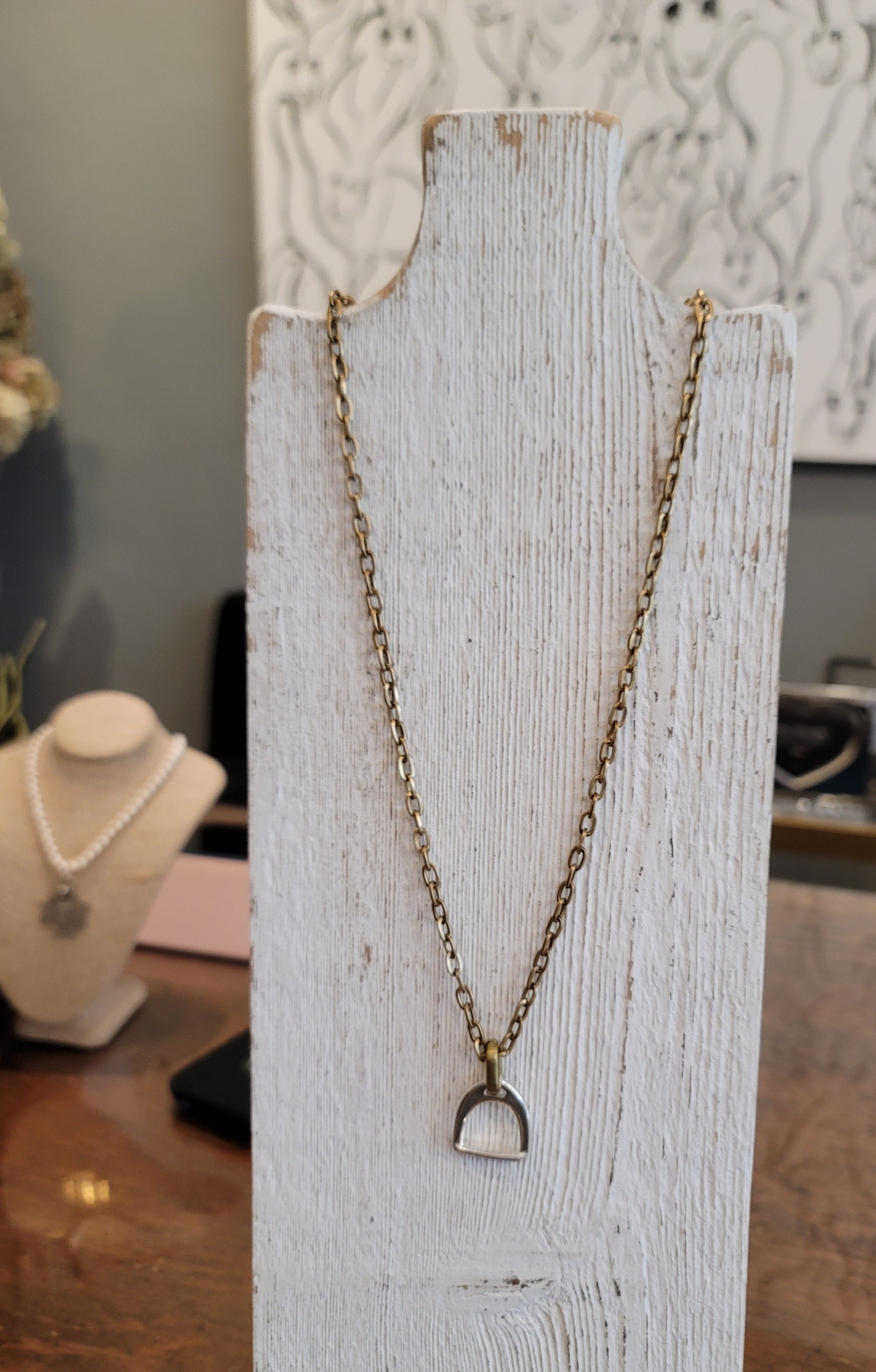 SILVER STIRRUP NECKLACE WITH GOLD CHAIN